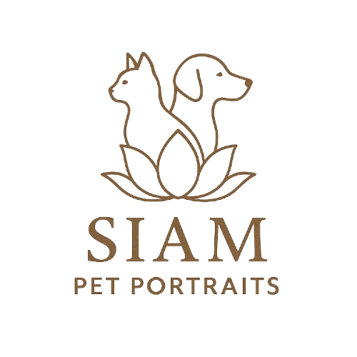 Logo for SIAM Pet Portraits featuring a line drawing of a cat and dog with a flower beneath, and the text 'SIAM PET PORTRAITS'.